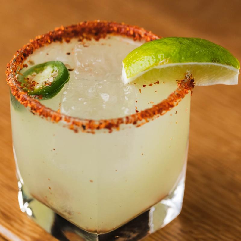 Rosaluna Mezcal | Muddled Jalapenos | Triple Sec | Fresh Lime Juice | Tajin Rim